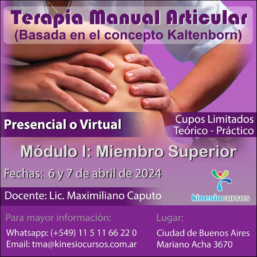 (Repaso de biomecánica articular. Revisión a la regla convexo cóncava en la articulación. Entrenamiento práctico en maniobras diagnósticas y de tratamiento específicas. Planteo de casos problema. Proceso de razonamiento clínico y confección de programa de tratamiento)